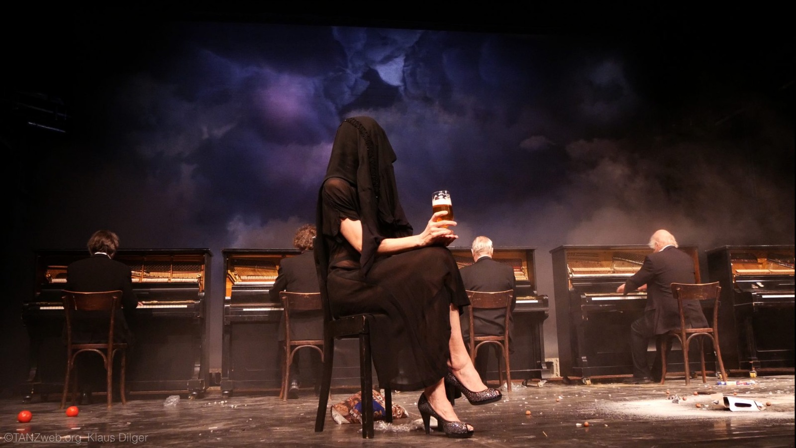 Sous la direction de répétition de Michael Strecker et de Robert Sturm, les 22 interprètes composent une trame de relations et de mouvements à la fois précise et erratique où l’absurde se mêle à des tensions latentes, à des éclats de rire presque nerveux, à des solidarités soudaines. La composition musicale, elle, franchit les frontières et les époques, entre traditions siciliennes, fragments d’Afrique, du Japon, d’Écosse, échappées baroques et renaissantes, puis nappes de blues/jazz américain.