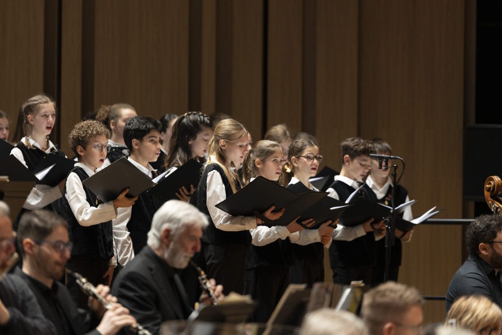 La violoncelliste Olivia Gay apparaît sur scène, auréolée d’une lumière douce. Ambassadrice de l’Office National des Forêts, elle incarne avec sensibilité la cause de la préservation des espaces sauvages. Dans « Im Walde » du compositeur hongrois David Popper, chaque mouvement d’archet semble raconter le bruissement des feuilles ou la fragilité des arbres. Till et Gradlon bougent au rythme de la danse des gnomes, répondant aux attaques précises de l’archet de la violoncelliste, tourbillonnent avec entrain lors d’une ronde menée d’une main de maître par le chef d’orchestre ou se laissent toucher par le ton nostalgique du chant du violoncelle, discrètement soutenu par les pizzicati des cordes. En guise de cadeau, Olivia Gay, complice, offre aux deux lutins une danse des elfes où elle démontre une virtuosité technique remarquable, toujours teintée d’une grande finesse. Les ailes vibrent et les farfadets tressautent de joie.